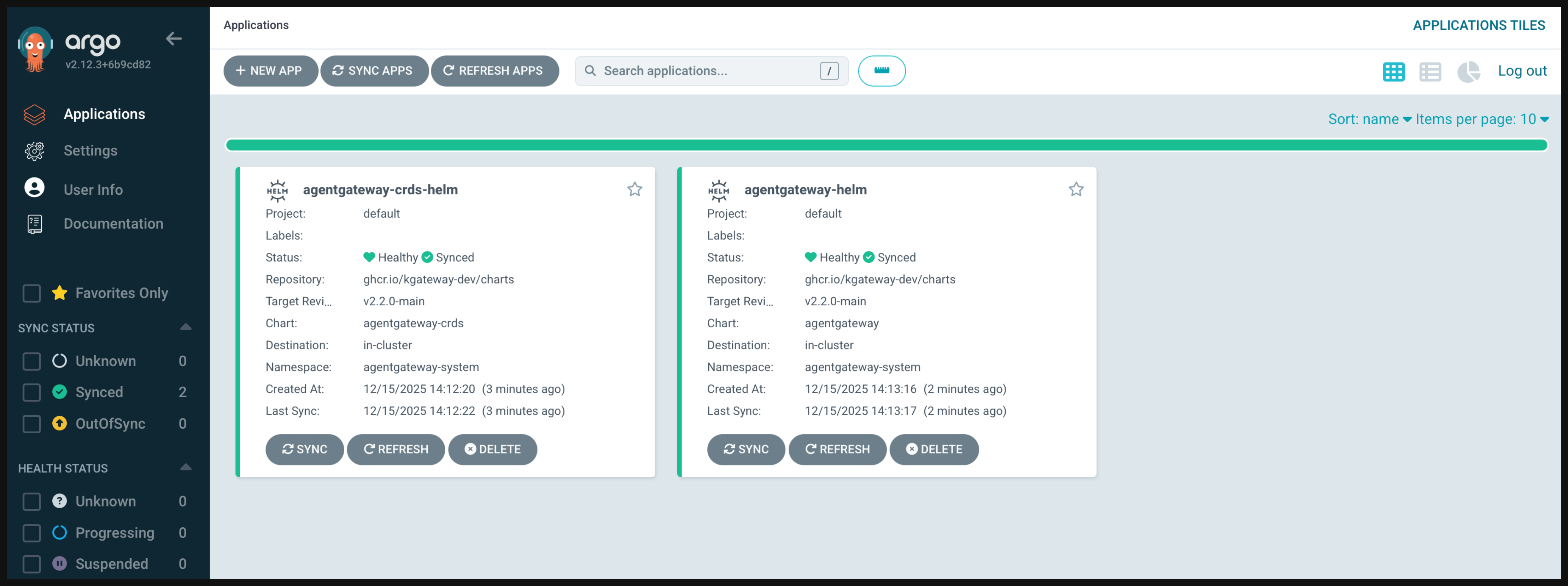9. Open the Argo CD UI and verify that you see the Argo CD application with a Healthy and Synced status.